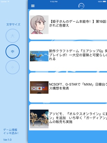 設定は、左スライドメニューにある文字の大きさの切り替えのみ。