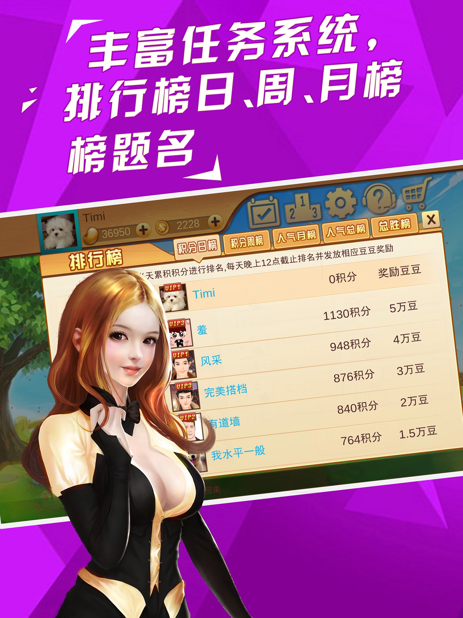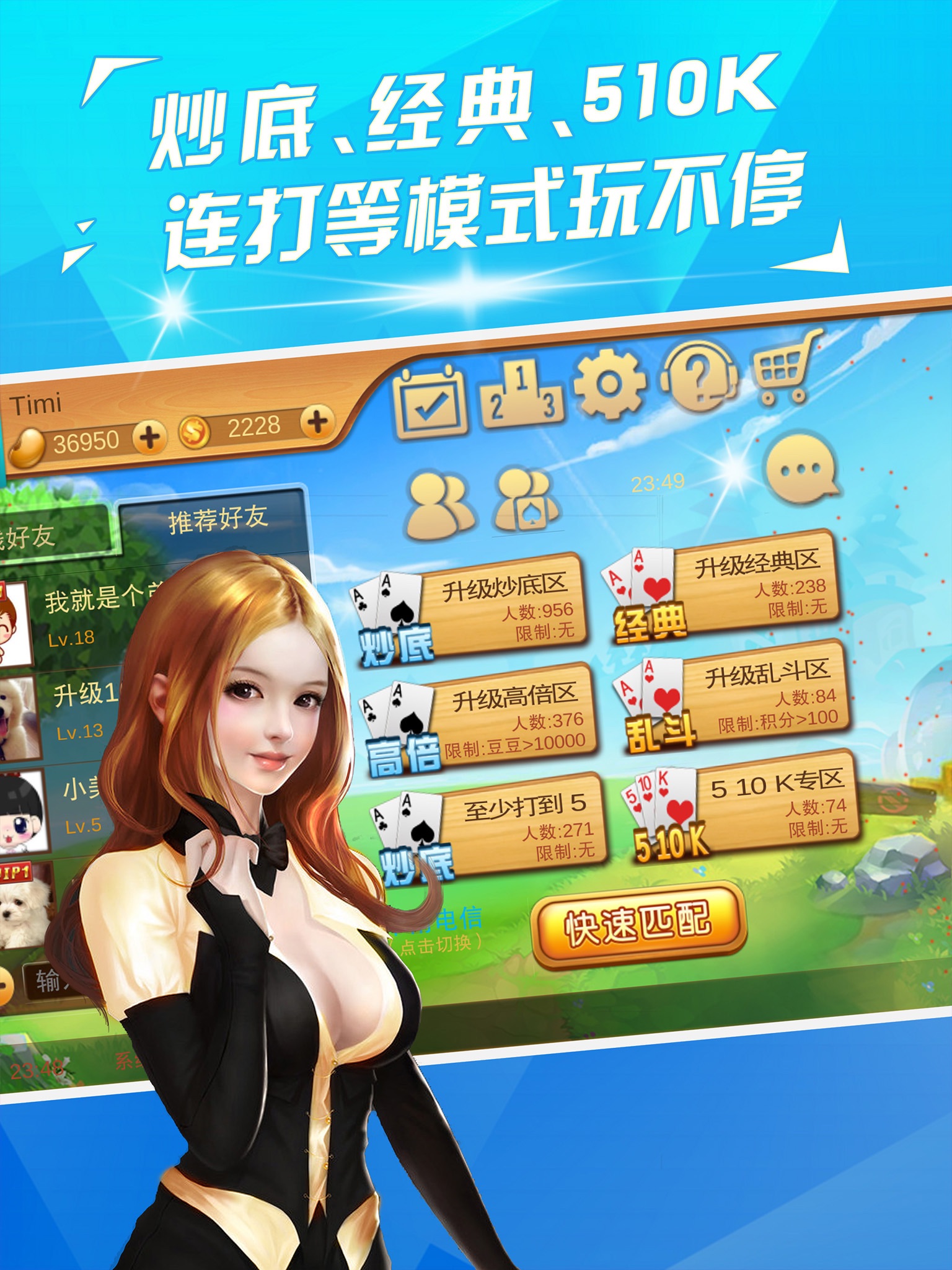 我们在欢乐升级电脑版本基础上原汁原味的还原了原来的玩法,而且在界面、网络、性能做了大量优化,万人在线即时匹配,炒底、炒地皮、双升、双升级、欢乐升级欢乐多多!
