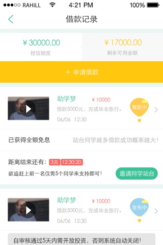 用款人邀请同学站台,可享受利息减免,减免部分由企业赞助。