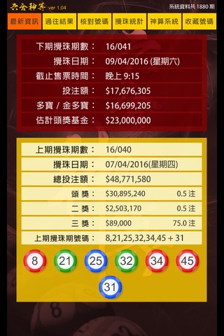 核對號碼:可核對過往2000期以上資料,中過3個字以上所有的結果顯示。