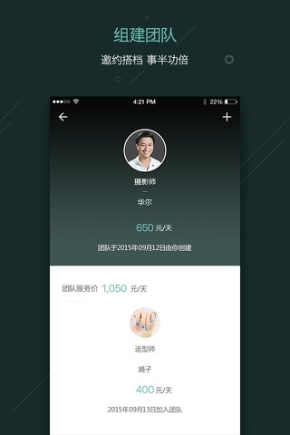 【团队整合】快速邀约合作搭档,组建拍摄团队,给客户提供优质摄影服务。
