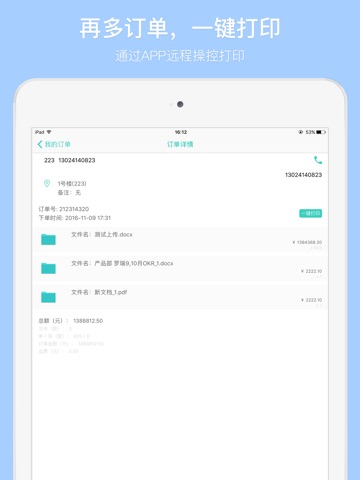 2.一键打印订单。通过APP远程操控打印机,躺着就能赚钱。