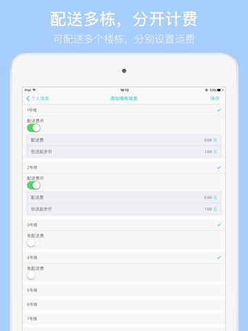 4.可配送多栋宿舍楼,并且分别设置配送费。
