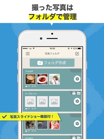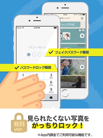 見られたくない写真のフォルダにはパスコードロック(有料機能)を掛ける事も可能でカメラロールとの連携も出来ます。
