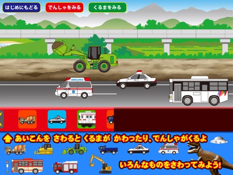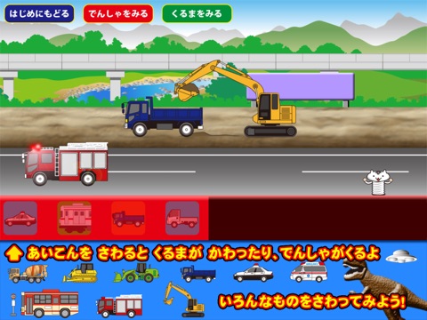 This is an app where you can watch and play with the unique movements of various working vehicles. It features simple tap operations with various interactive elements.