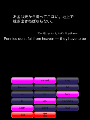 表示されている単語を順番に一語一語タップして、偉人の名言を再現してください。