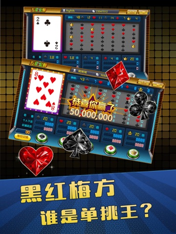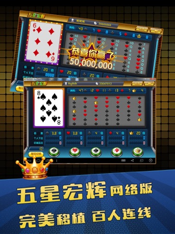 “五星宏辉” 网络版(又叫保单机,草花机,单挑),完美原版保单机移植,画面更炫丽,游戏更有趣。游戏操作简单,极易上手,是打发无聊时间的最佳选择!同时,还可以拿给朋友互动。本游戏采用纯随机概率算法,神秘强大的彩金系统会给您带来连环奖励,快运用运气和判断力来挑战夺宝。