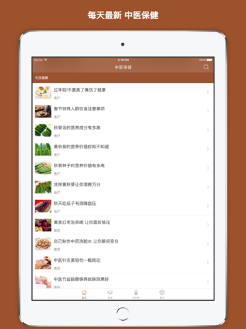 1.每天更新,最新中医养生保健之道推荐,图文并茂,精彩呈现~