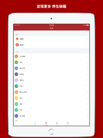 介绍养生保健、药膳食疗、中医调理、疾病防护、健康常识、各类针对性的养生常识和方法。通过神器算法猜出您的兴趣,向您推荐最适合您的养生内容。