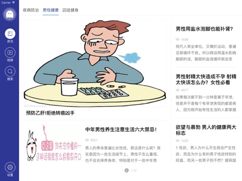 介绍运动健康的相关知识和资讯。通过算法猜出您的兴趣,向您推荐最适合您的运动健康知识,同时您也可以向医生进行咨询。