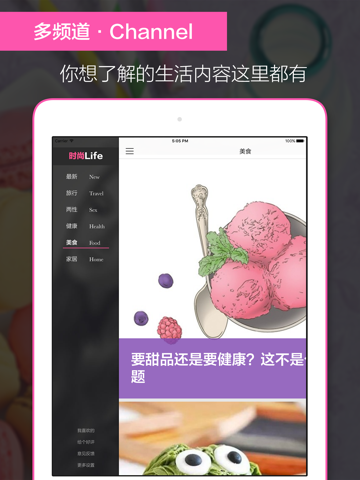 3、内容丰富优质,涵盖旅行、两性、美食、健康、家居五大频道。