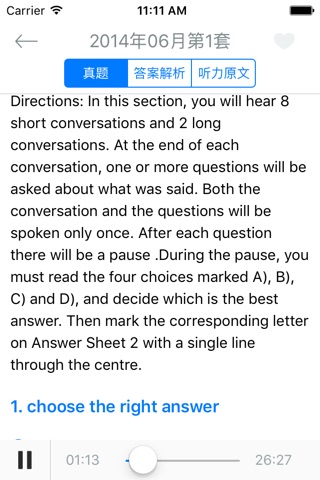 六级听力真题 - 28套历年大学英语cet6考试听力试卷及原文答案 at Mac App Store analyse