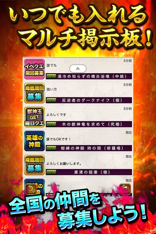 降臨イベントクエスト名からマルチプレイ仲間を検索! 超絶降臨、特別降臨、イベクエ、ゲリラクエスト(亀クエ)、曜日クエ、タス集め周回、タスの巣窟、顔合わせ、レチリ運上げ、英雄の神殿などなど...マルチ目的別にマルチプレイ仲間を検索!