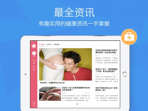 介绍母婴的相关知识和资讯。通过算法猜出您的兴趣,向您推荐最适合您的母婴知识,同时您也可以向医生进行咨询。