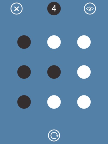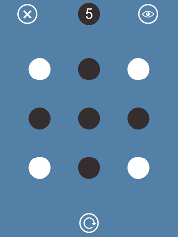 棋盘中分为黑、白两种棋子,如果点击一个棋子,则该棋子会改变颜色,同时上下左右四个棋子也会改变颜色。