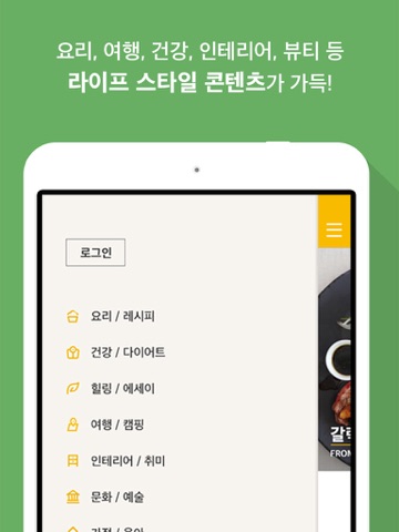 요리, 여행, 건강, 힐링, 인테리어, 뷰티 등