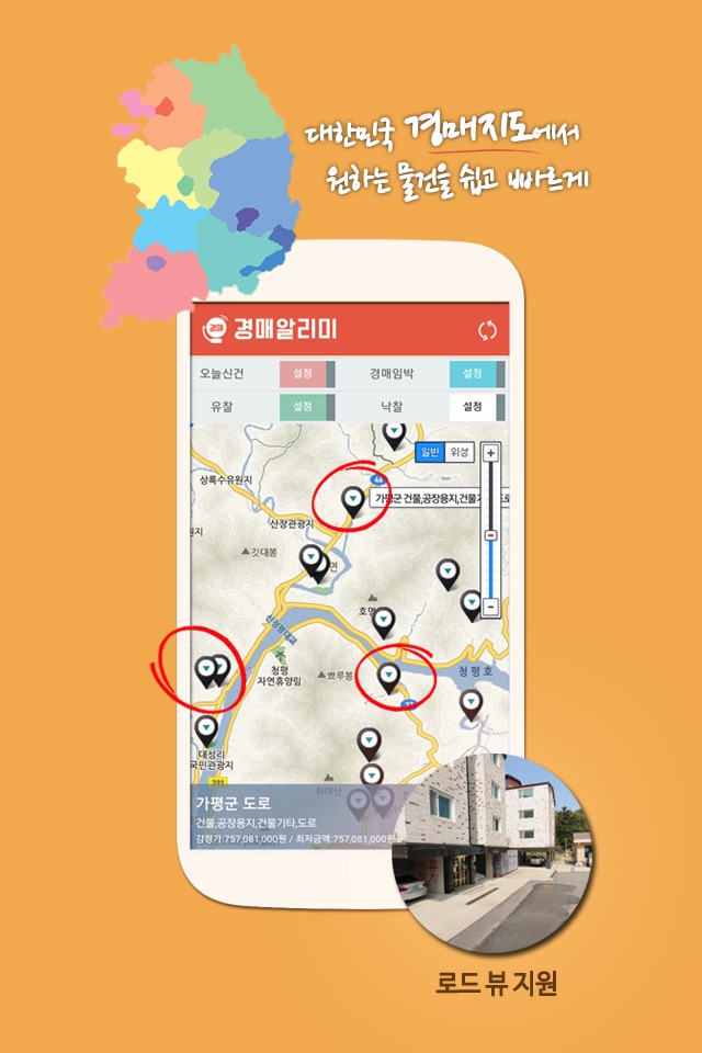 - 경매 물건에 대한 상세보기 (위치, 지도, 로드뷰 제공)