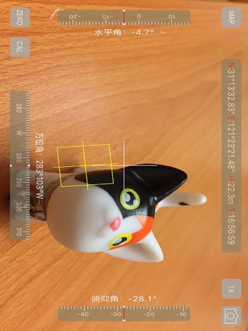 一款专业级测绘app,能在拍照时纪录拍照时的经纬度,海拔高度,时间,水平角,水平校校准,俯仰角,方位角等信息的测绘辅助类app。