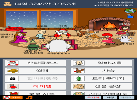 - 산타 할아버지의 레벨이 증가하면 클릭(탭)당 인형 수가 증가합니다!