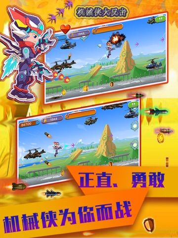 触摸屏幕以实现机械人上下移动来射击及躲避飞机的袭击。