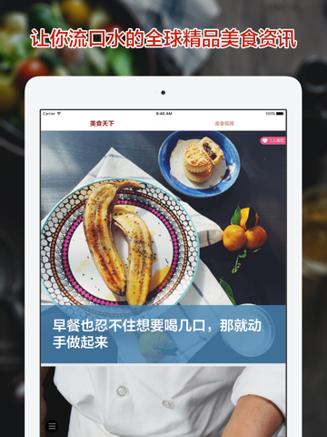 涵盖美食推荐、美食背后的故事,有意思的食物等优质内容,国内外极具诱惑的食物,让你看着就流口水,有说吃就吃的冲动。还有烹饪视频教学,详细的食材配比与制作流程让你轻松做出大厨级的美味。