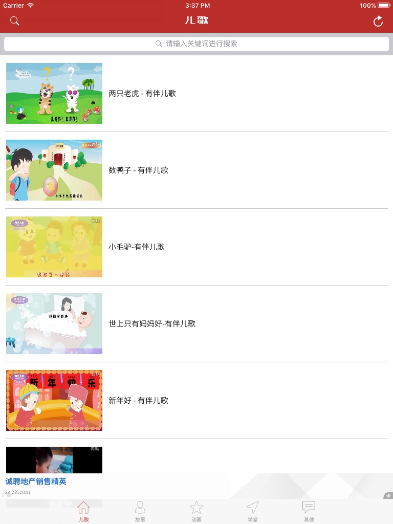 中文儿歌 , 舞蹈儿歌 , 睡前儿歌 , 0-1岁儿歌 , 1-3岁儿歌 , 3-8岁儿歌 , 英文儿歌 , 睡前故事 , 成语寓言 , 世界童话 , 数学童话 , 唐诗三百首 , 宝宝识字 , 宝宝识物 , 三字经 , 弟子规 , 常见英文单词 , 趣味折纸等内容应有尽有。