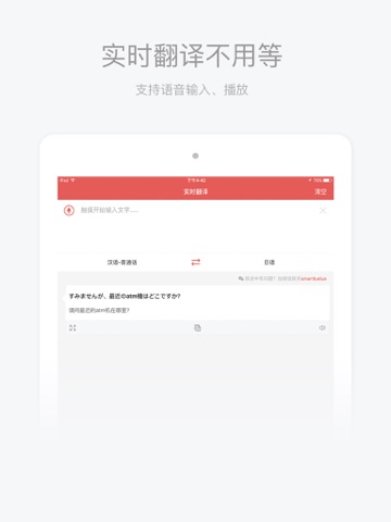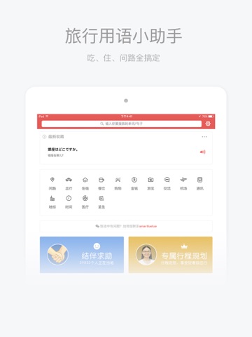 地道常用语、离线使用、语音播放、实时语音翻译。消除一切语言障碍,旅行途中无忧交流,轻松玩转日本!