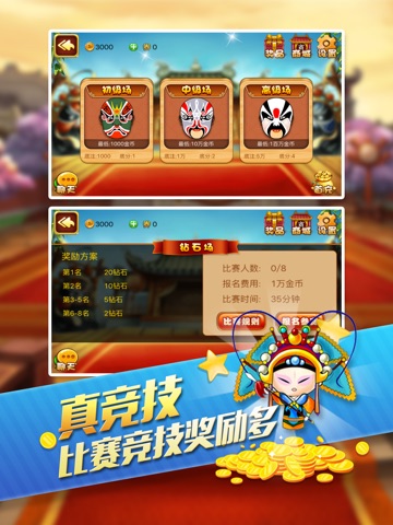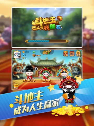 此app是手游产品,游戏内容为四人斗地主。其中有金币积分场、钻石场、奖券场、好友对战场。