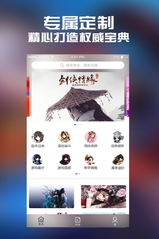 提供最新最全的游戏攻略、新闻资讯、游戏视频、精彩活动;以及专业的问答系统,不懂就问,快搜秒答,跟大神一起感受指尖江湖,尽享畅爽PK,恣意江湖人生!
