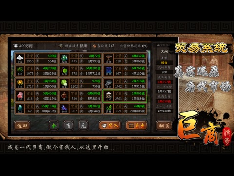 ●强大的物价模拟系统,不同地区都有着物产与物价差异,好好了解各地的区别与物价规律将对跑商非常有