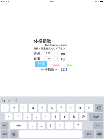 体格指数計算機では、身長・体重を入力する時、小数点以下は入れなければ"0"として計算されます。