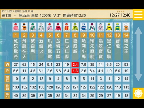 免費香港賽馬資訊、排位資料、詳細賽績、晨操紀錄、各項隔夜詳細賠率走勢(獨贏,位置,位置Q,連贏)、賽馬結果、騎師分場表、練馬師分場表、數據貼士、擂台戰、收音機,虛擬賽馬預測遊戲。虛擬賽馬百萬大賽遊戲投注、比賽及結果,及相關賽馬消息等。(排位表內點擊馬匹名,騎師,練馬師名可查相關資料.)