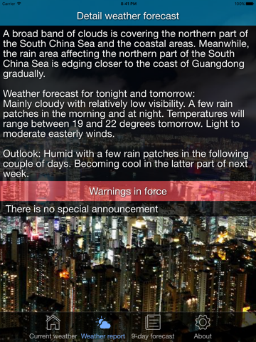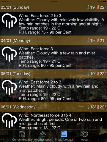 The app uses weather data from Hong Kong Government Data.One, which is accurate and timely.
