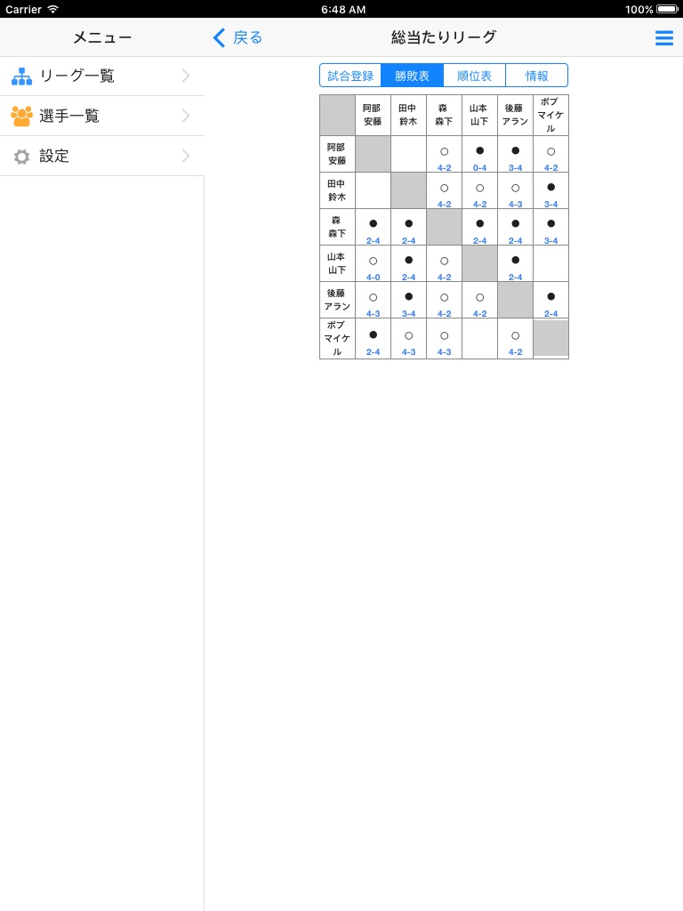 総当たり戦形式のリーグ戦