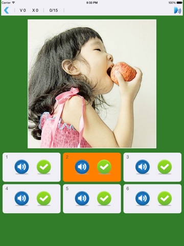 4,多种形式的测试题型,包括:a通过图片找语音,b通过语音选择图片,c判断题,d通过语音选择文字。