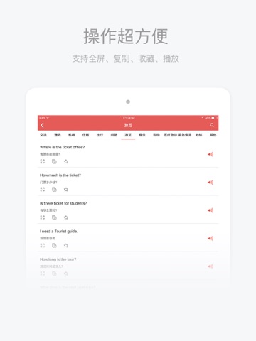 2、支持发声、复制、收藏、全屏;