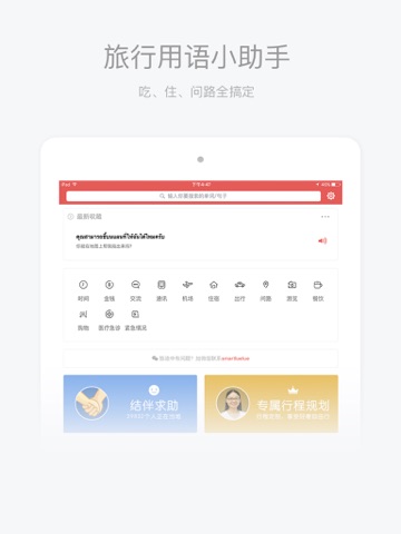 涵盖各种旅游中的应用场景。出行、住宿、购物……一应俱全,还有泰国当地的城市景点、饮食文化、娱乐购物等地道信息。