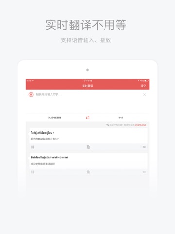 地道常用语、离线使用、语音播放、实时语音翻译。消除一切语言障碍,旅行途中无忧交流,轻松玩转泰国!