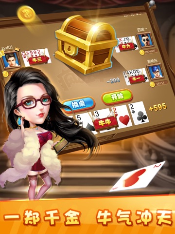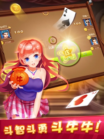 比庄:每个人都可以选择比庄,在全部比庄的人中间选取财富最多的人为庄家。财富多的人可以放弃比庄,如果四个人都放弃比庄,那么庄家也将是财富多的人。 每人发五张牌,由玩家自己组成牌型,按确定后亮牌。 闲家只和庄家比牌,闲家之间不发生关系。