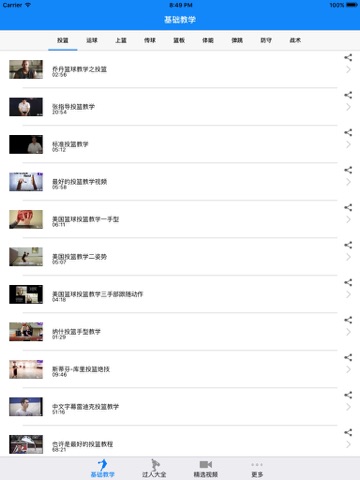 篮球训练营-是一个关于篮球技术学习和篮球视频集锦欣赏的软件,主要包括基础教学、过人大全、精选视频几个栏目。
