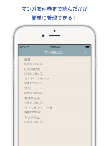 ・マンガを本棚に登録することで、巻数や発売日の管理ができます。