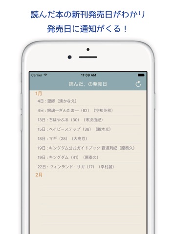 ・本棚に登録されたもの以外のマンガの発売日の一覧が見れます。