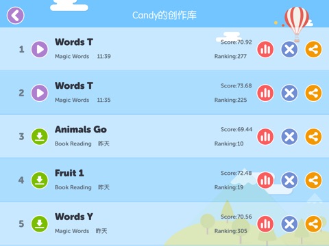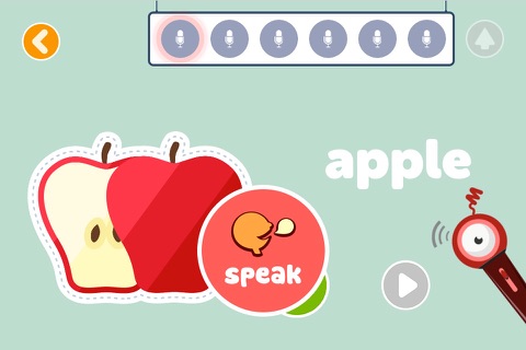 Magic Words版块:为孩子提供数百个生活中常见英文图像词,趣味专业的练习模式能给孩子的语音提供专业测评。