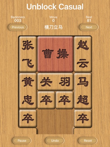 关羽与曹操当然是解开这一游戏的关键。四个刘备军兵是最灵活的,也最容易对付,如何发挥他们的作用也要充分考虑。