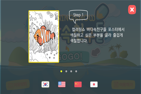 본 어플리케이션을 이용하기위해서는 "컬러링쇼 바다속 친구들 포스터가 필요합니다.