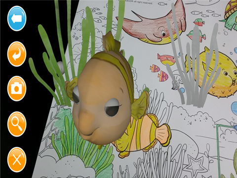 2. 색칠한 친구를 컬러링쇼-바다속 친구들 앱화면에 비춰 보세요.
