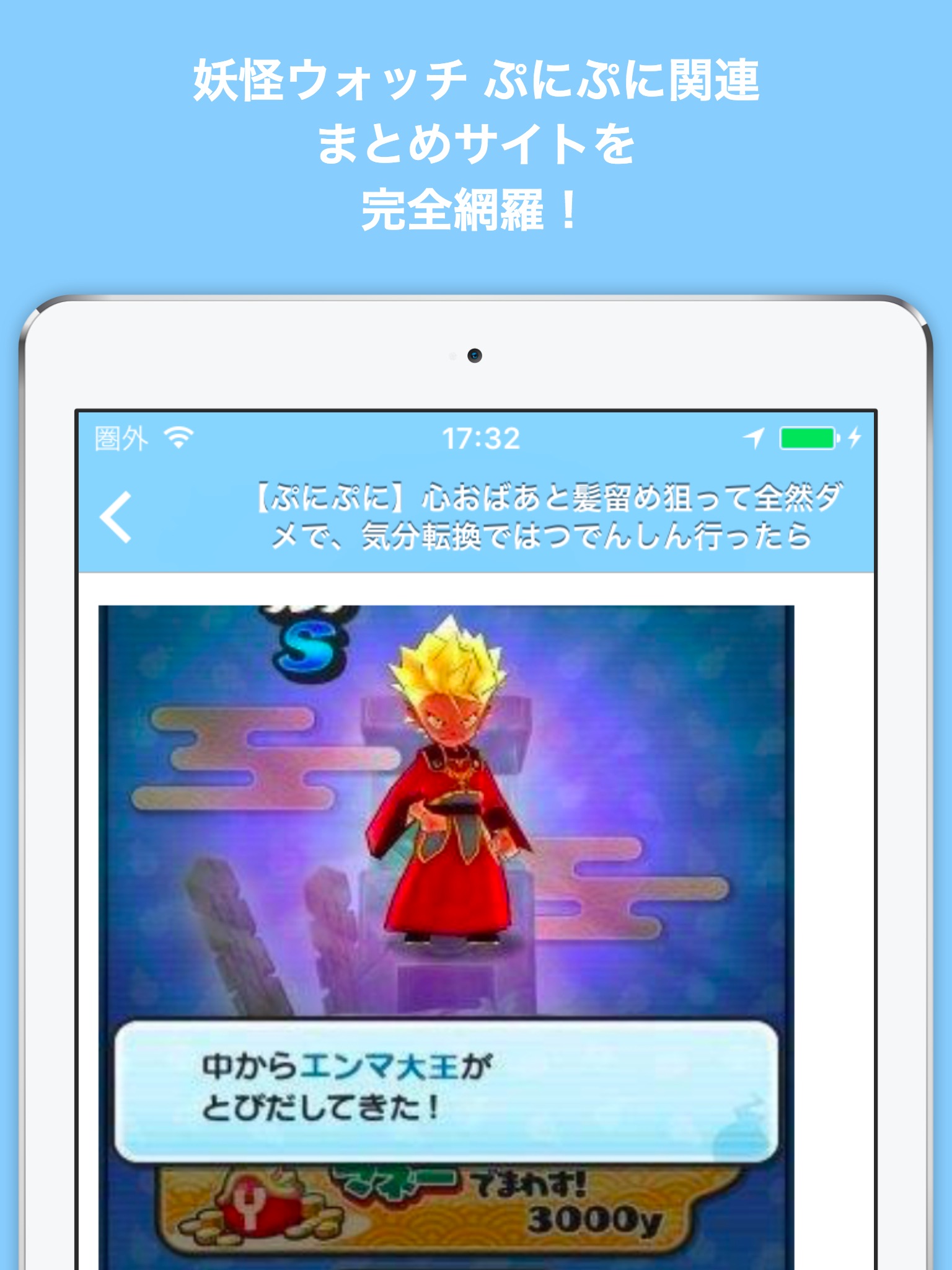 このアプリさえあれば1タップで簡単に妖怪ぷにニュースがチェックできます!