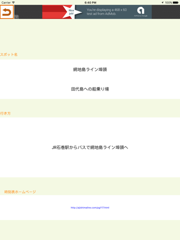 船の時刻表のHPが表示されます。