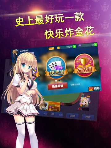 2016年,投入巨资重金打造的超人气炸金花游戏。一上线,同时在线突破5万人。精彩刺激的全民PK拉开序幕!