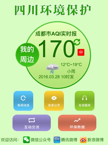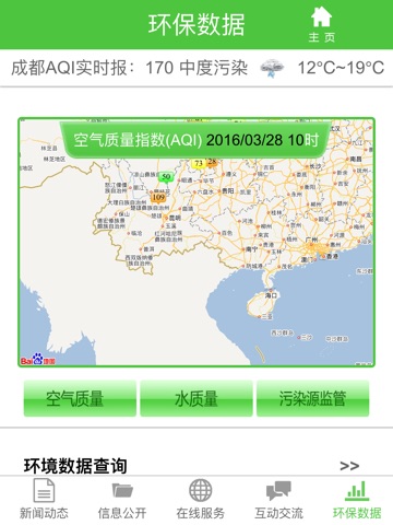 用户可以了解到四川环保相关的新闻、空气质量、天气预报、站点实时数据,以及最新的环保相关信息。